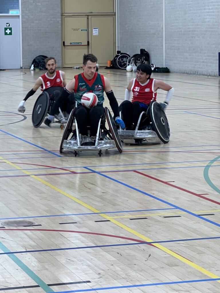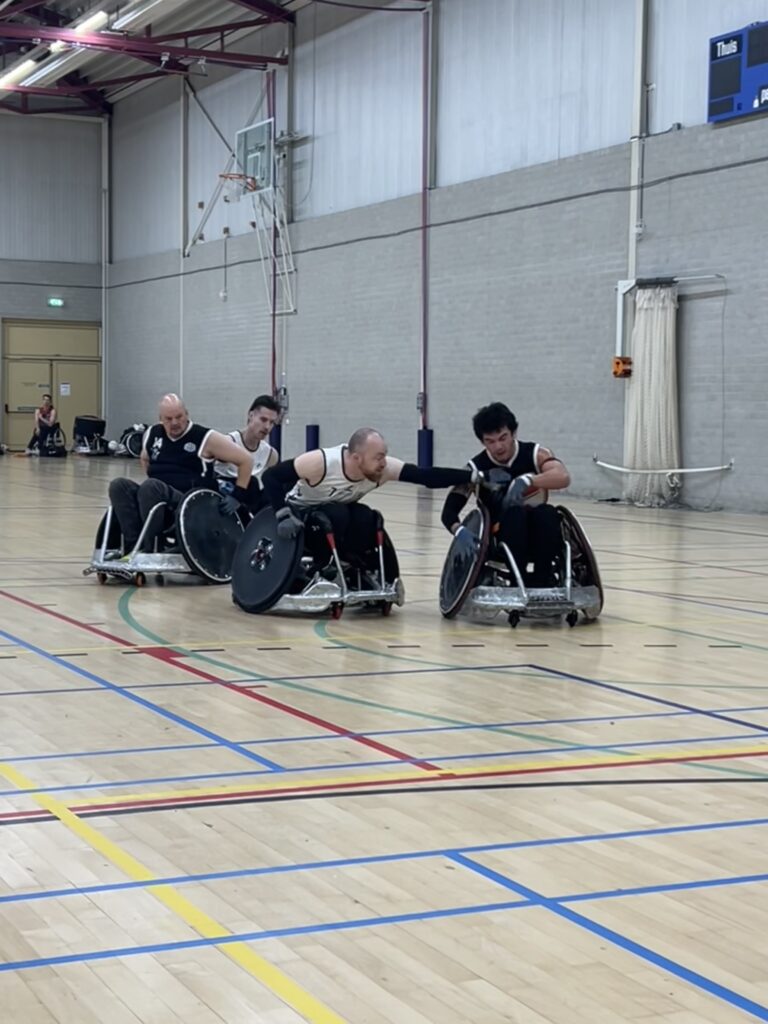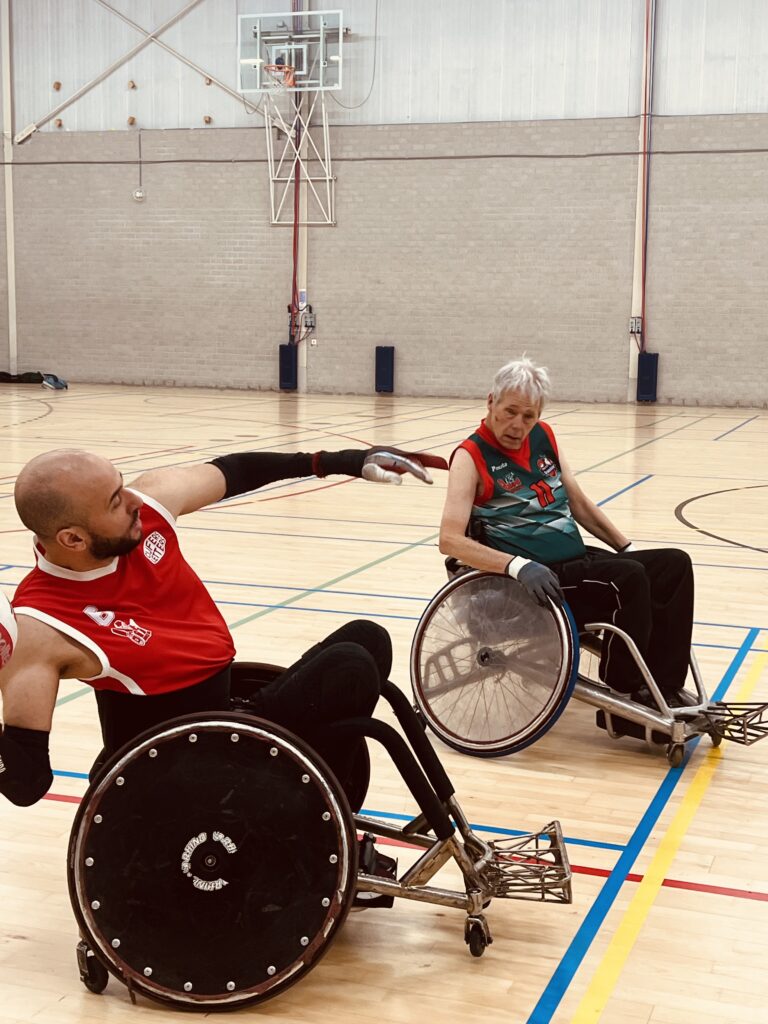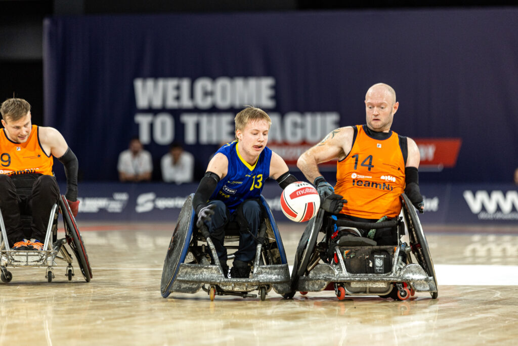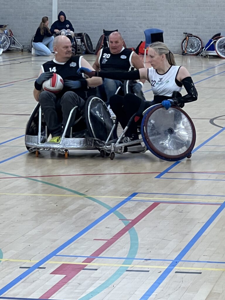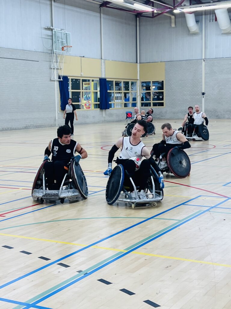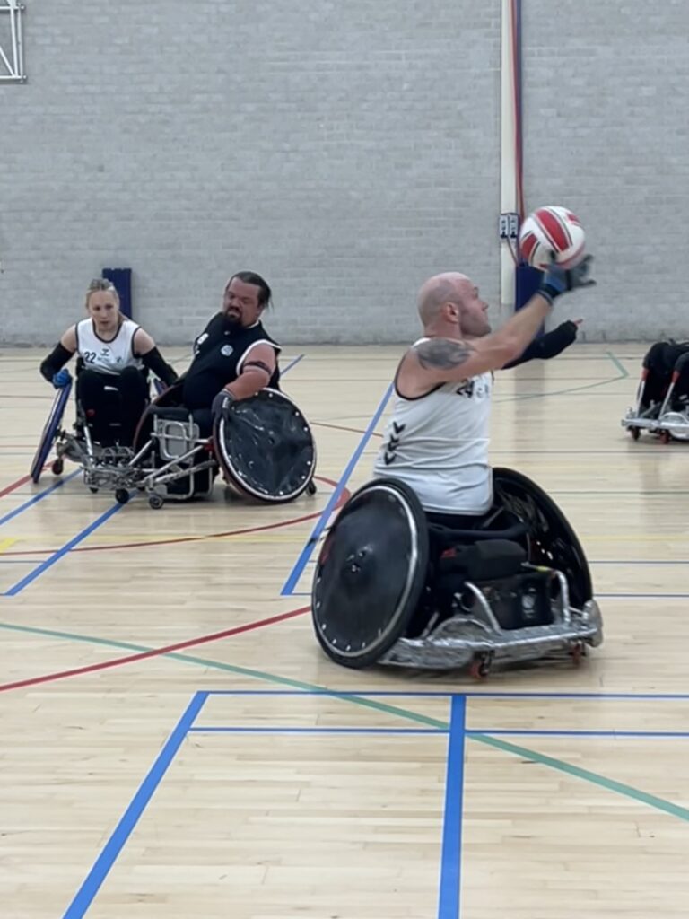 Onderstaande foto’s geven een indruk van verschillende competitiedagen in het rolstoelrugby. Ze laten de dynamiek van de sport zien: van intensieve actie op het veld tot de enthousiaste reacties van spelers en coaches aan de zijlijn.